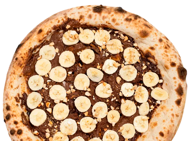 Тесто, шоколадно ореховая паста Нутелла, свежий банан, запеченый кешью.Вес: 440-460 г